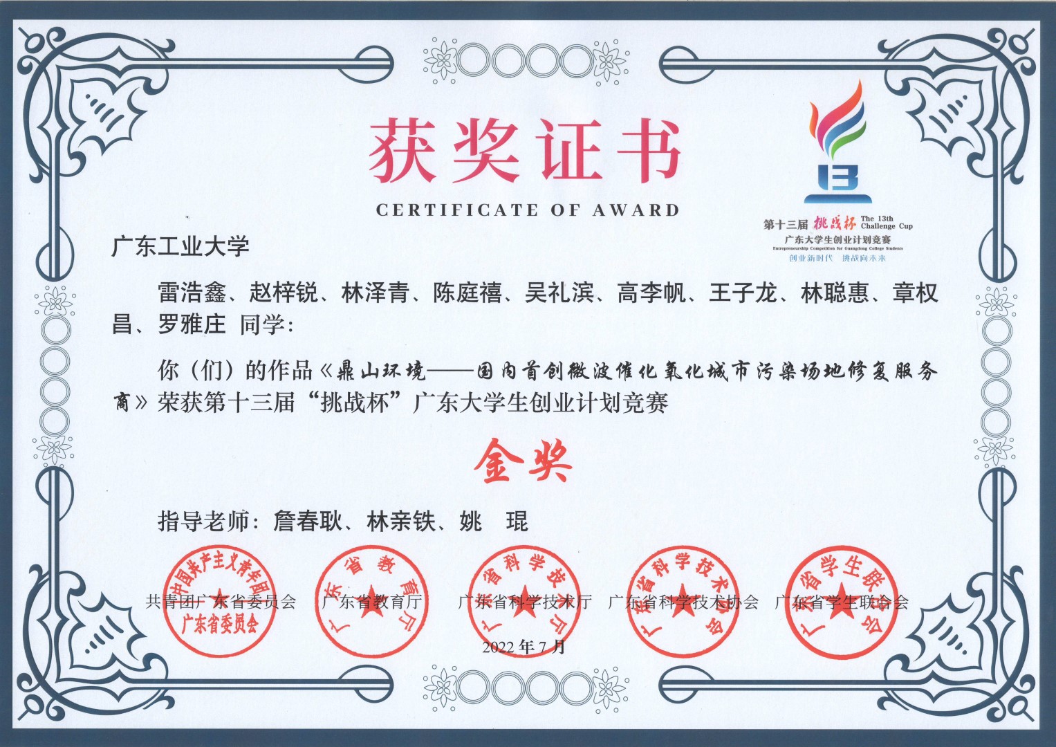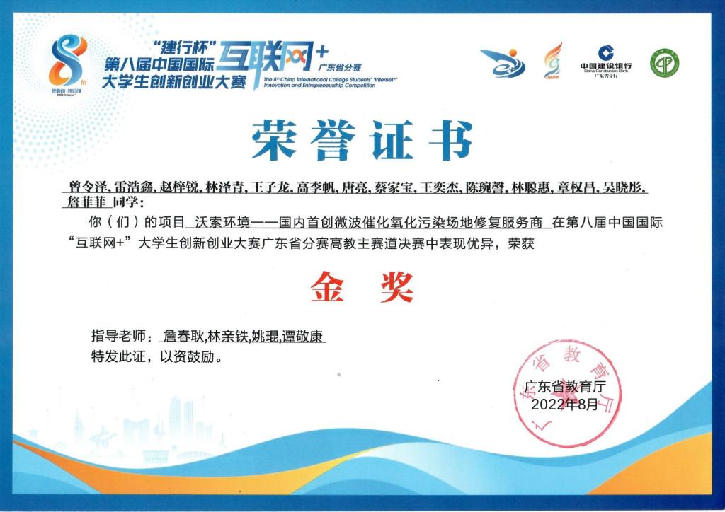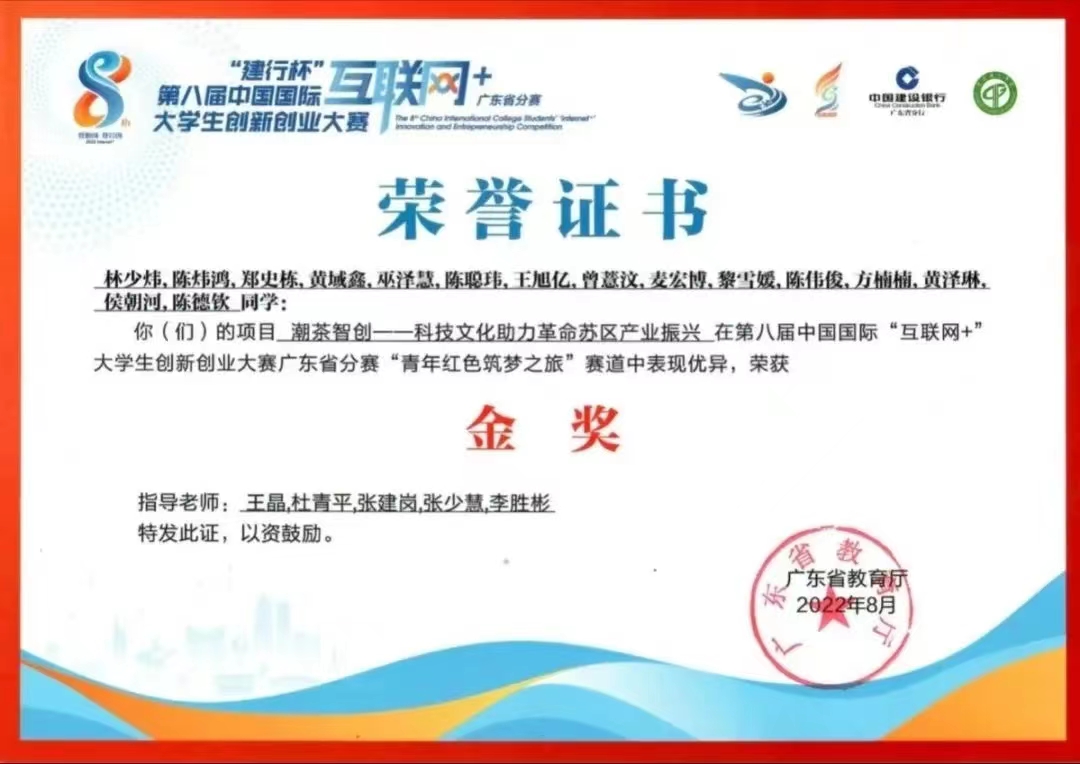 【202208】第八届广东省中国国际互联网+大学生创新创业大赛金奖